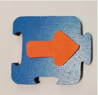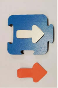 3 – Enganxar amb cel·lo aquestes fletxes de cartolina a les peces de direcció dreta.
