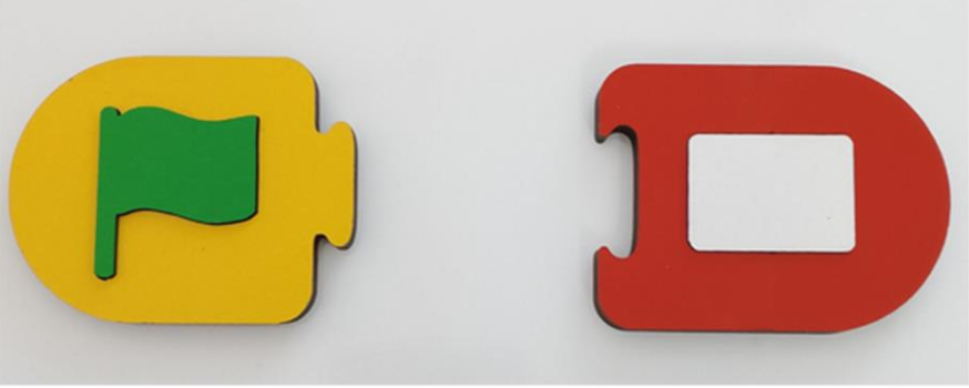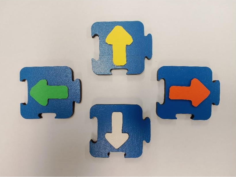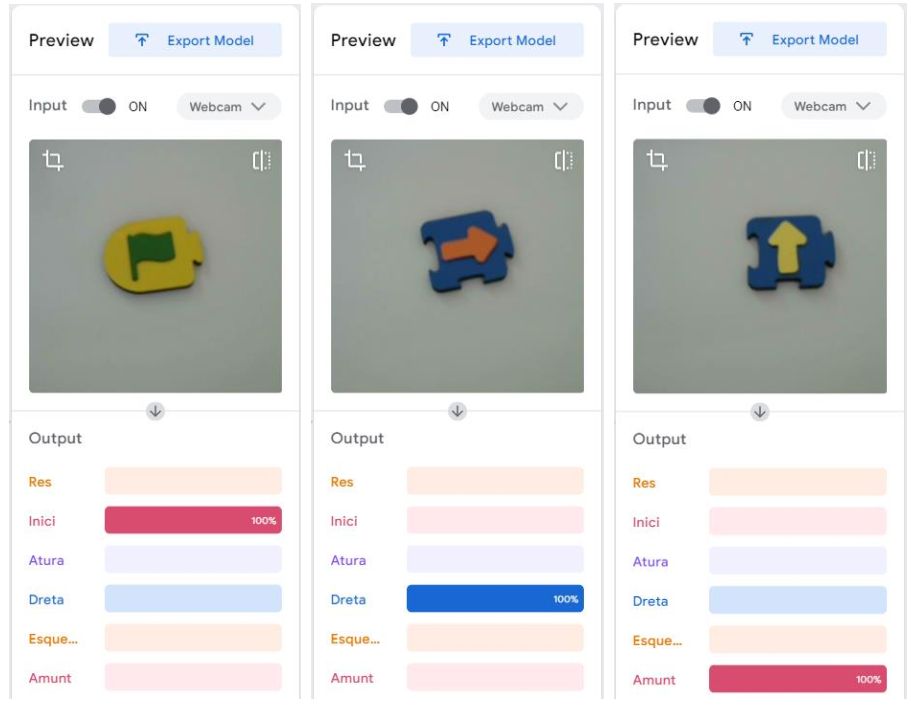 Abans de començar a treballar en el model d’intel·ligència artificial, cal tenir presents algunes consideracions. Aquesta tecnologia digital pot distingir formes i colors. No obstant això, algunes de les peces del joc Scratch Jr Tactile són molt semblants entre elles. A més, un infant o adolescent amb necessitats especials pot deixar la peça sobre la superfície de reconeixement en posicions diferents. És a dir, la fletxa dreta, la pot deixar girada com si apuntés cap a l’esquerra o a qualsevol altra direcció. Per tant, després d’algunes proves s’ha trobat una solució simple però eficient: afegir color a les peces de fusta més conflictives.