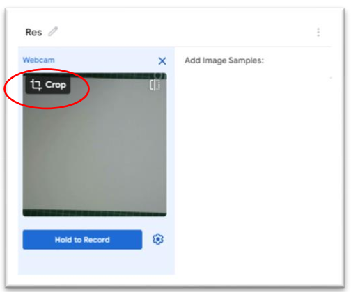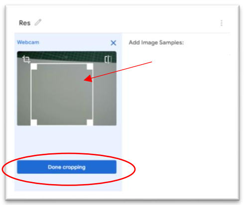 Pas 9. Prémer sobre la icona de la webcam per activar-la. Si és necessari, es pot ajustar, amb l’opció Crop, l’enquadrament per agafar només la superfície blanca del foli o cartolina.
