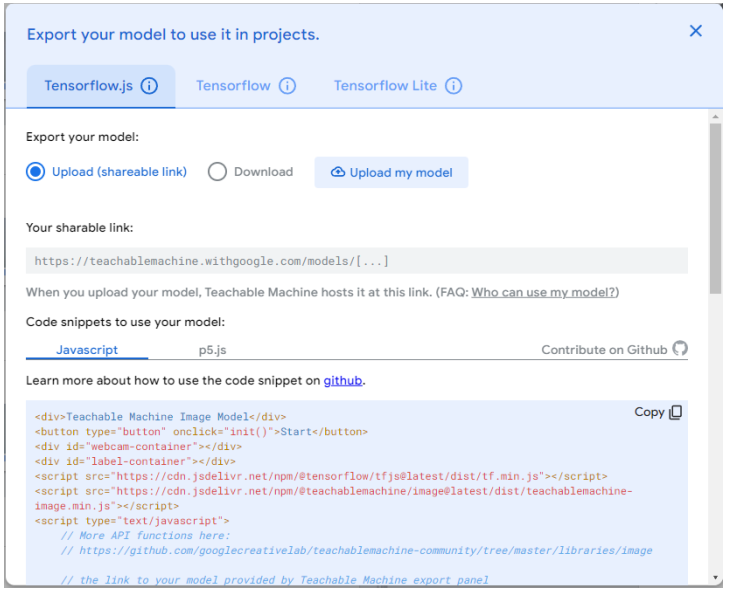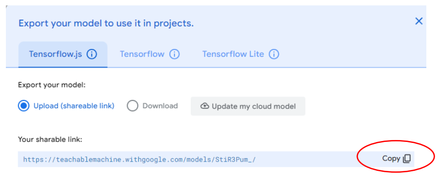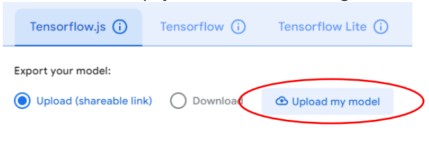 Pas 21. El model ha de pujar al servidor de Google fent clic a Upload my model