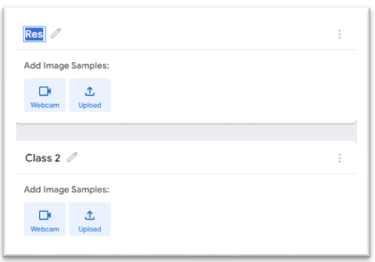 Pas 8. Clicar al llapis que hi ha al costat del nom “Class 1” per canviar-lo a “Res”. Les classes són els noms dels objectes que s’identificaran. És important que també s’identifiqui la zona de reconeixement sense cap peça de fusta. Per aquest motiu, se li ha dit “Res”.