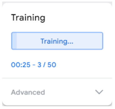 Pas14. Un cop s’han obtingut les captures de totes les peces que es vulguin incloure en el model d’IA, ja es pot passar a la part de l’entrenament (Training). Atès que ja s’han modificat les peces de fusta amb les cartolines de colors, els paràmetres avançats de l’entrenament ja no cal utilitzar-los.
