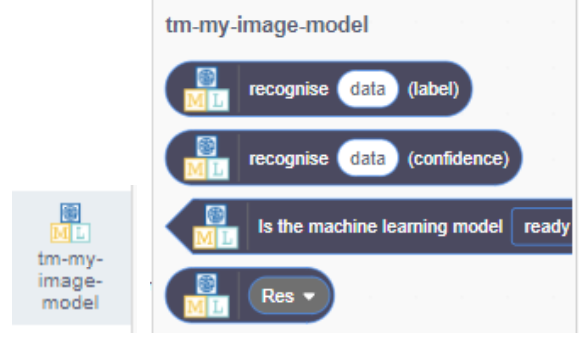 Pas 7. En obrir-se el nou projecte Scratch, apareix una família de blocs que permet utilitzar les classes definides en la preparació del model d’IA (pas 13 de la secció B).