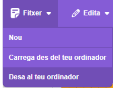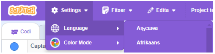 Opció per canviar l’idioma de treball amb l’aplicació Scratch