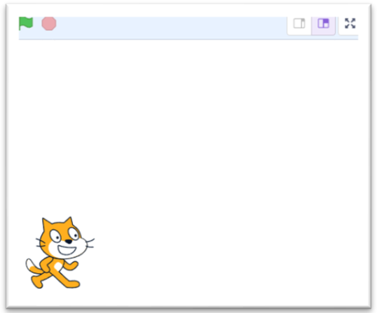 Pas 10. De les famílies de blocs “Esdeveniments” i “Moviment” incloure els següents blocs per tal de garantir que en iniciar l’aplicació, el personatge del gat estarà en aquesta cantonada inferior esquerra.