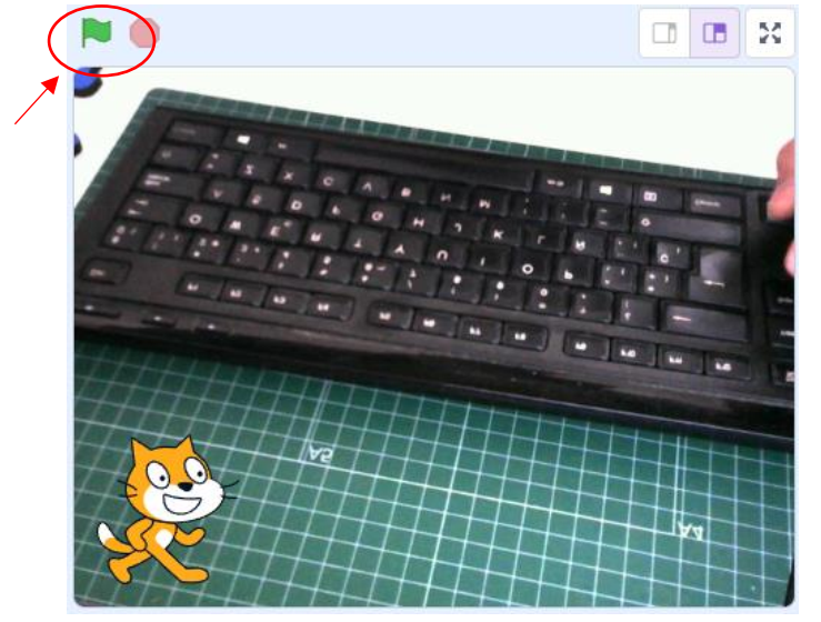 Pas 9. La primera acció serà arrossegar el gat fins a la cantonada inferior esquerra per deixar espai per veure les peces que detecta la webcam.