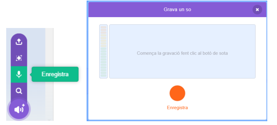 Pas 18. A la cantonada inferior esquerra de l’entorn de treball hi ha el botó que permet obrir la finestra d’enregistrament de sons.