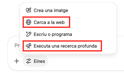 • ChatGPT (opció “Executa una recerca profunda”, de pagament)