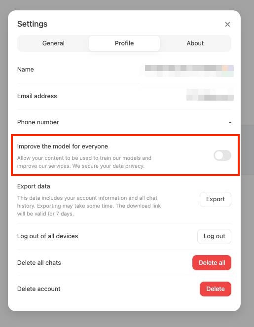 L’entrenament de la intel·ligència artificial consisteix a ensenyar a un sistema a reconèixer patrons mitjançant grans volums de dades. Les dades són molt valuoses per a les empreses que creen les aplicacions d’IA i, per defecte, tenen activat que utilitzaran totes les dades per entrenar els seus models. Això implica riscos de privacitat. Les dades poden ser utilitzades per fer un perfil de l’usuari o, si és produeix un incident de seguretat, les dades poden ser robades.