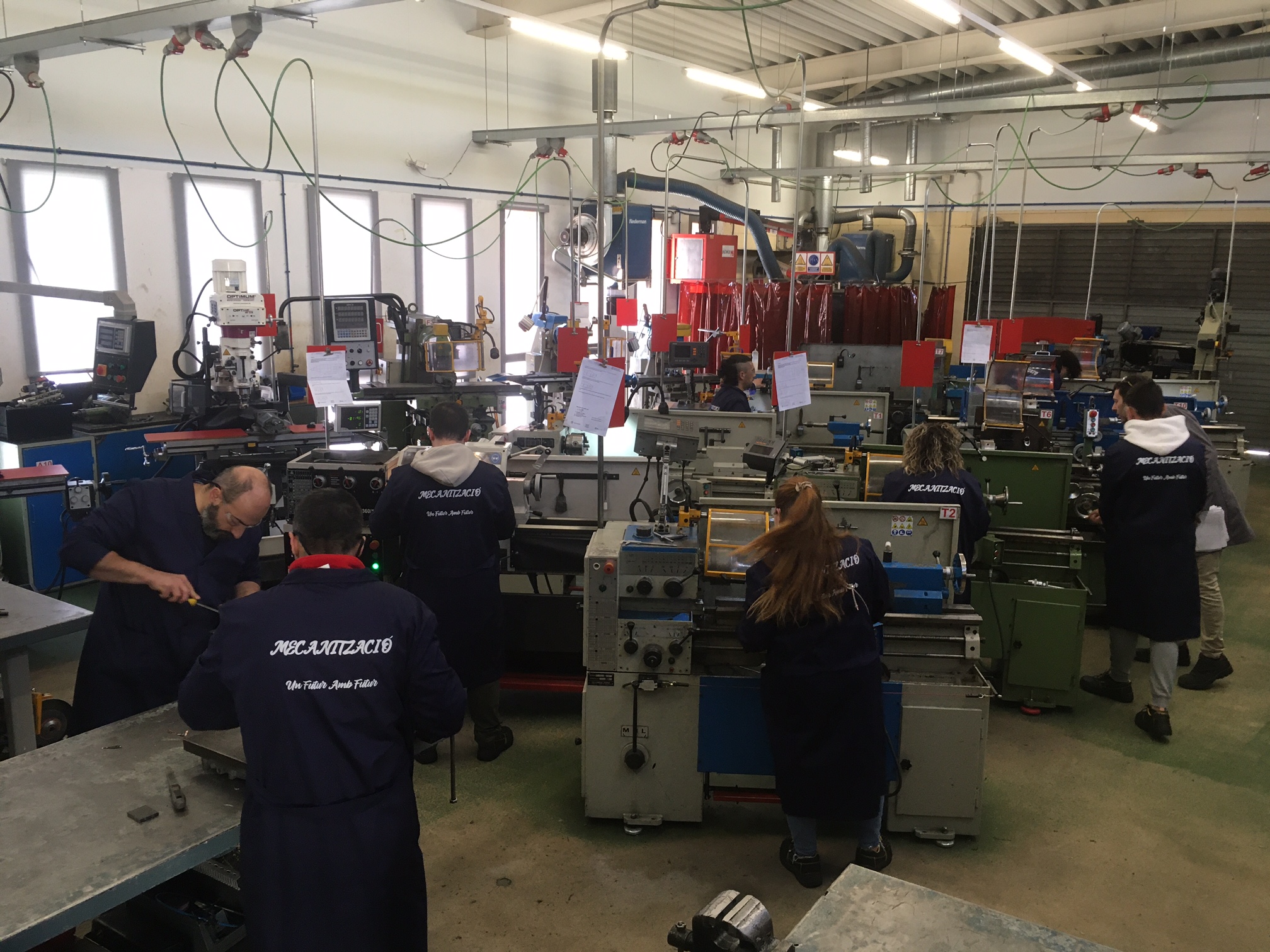 Els nostres alumnes, més entusiastes que mai, ja han començat les seves pràctiques amb torn i fresadora convencional. Com es pot observar a la imatge, estan totalment concentrats en aprendre i aconseguir els millors resultats possibles. La seva dedicació i compromís són evidents, i estem segurs que aquesta formació els proporcionarà les habilitats necessàries per excel·lir en el camp de la mecanització.