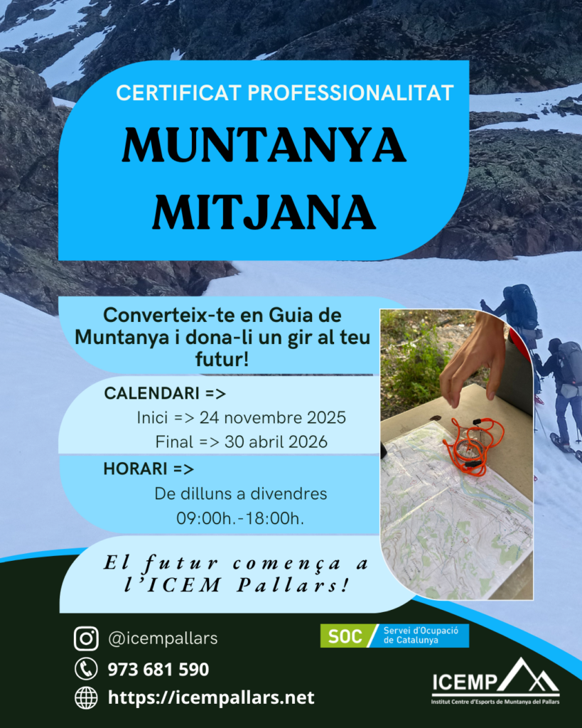 L’ICEM Pallars manté una promoció anual d’aquesta formació, amb les dates d’inici i final del proper període ja definides: