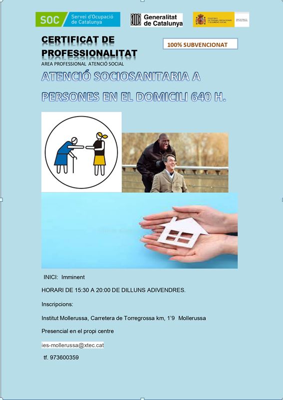 Titulació: Atenció sociosanitària a les persones en el domicili.