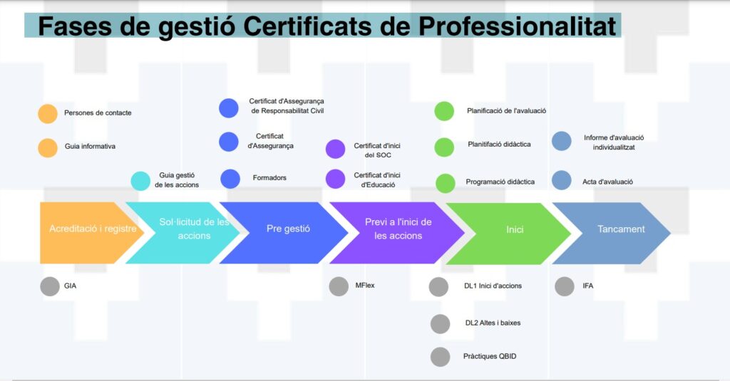 En aquesta part de la sessió es va explicar el finançament dels certificats de professionalitat, les eines per la gestió econòmica i la planificació dels CPs, i la gestió del personal col·laborador.