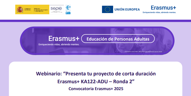 Webinar: “Presenta tu proyecto de corta duración Erasmus KA122-ADU – Ronda 2”