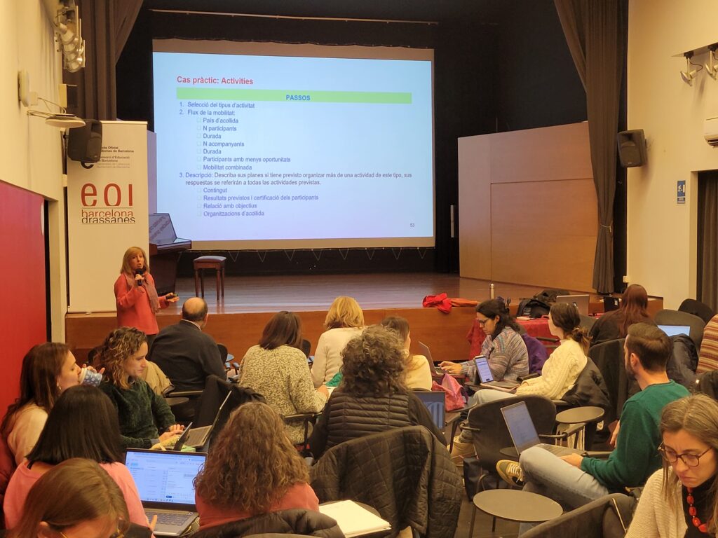 En aquesta jornada presencial han assistit 80 docents, que, distribuïts per grups, han analitzat un projecte fictici presentat amb la mirada d’una persona avaluadora de projectes Erasmus+. S’han fet crítiques constructives i propostes de millora. La sessió ha permès una interacció molt interessant entre totes les persones assistents, i ha estat una oportunitat, també, per compartir i solucionar alguns dels dubtes dels propis projectes que es volen iniciar, així com entendre millor, el procés de presentació dels projectes perquè siguin acceptats i es puguin portar a terme. Et compartim un vídeo d’una part de la sessió.