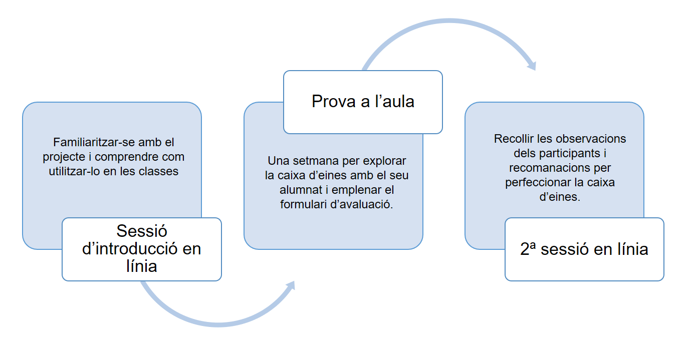 | Prova a l’aula | Una setmana per explorar la caixa d’eines amb l’alumnat i emplenar el formulari d’avaluació.