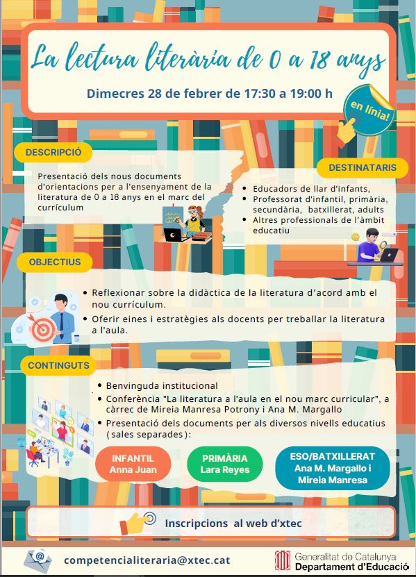En aquesta infografia en trobareu tota la informació detallada. Podeu inscriure-us a l’activitat a l’apartat de formació en competència literària del web d’xtec.