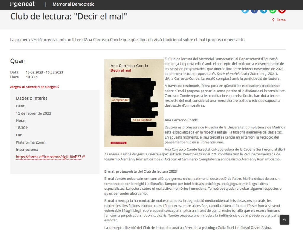 Club de lectura DEMD: Decir el mal d’Ana Carrasco Conde. 15 de febrer