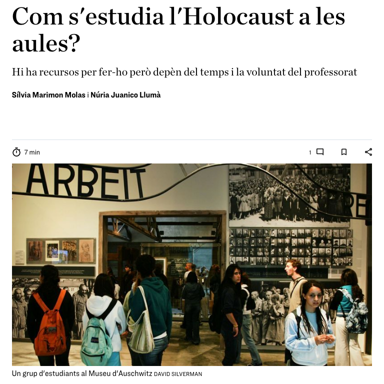 Com s’estudia l’Holocaust a les aules admin21/02/22 Article de Sílvia Marimon i Núria Juanico al diari Ara, del 20 de febrer de 2022, sobre sobre l’ensenyament de l’Holocaust i de la memòria històrica a les aules de secundària.