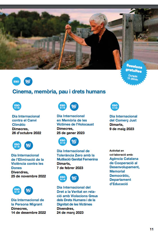 Filmoteca a les escoles 2022-2023: Cinema, memòria, pau i drets humans admin11/02/23 A la pàgina 11 del programa Filmoteca a les escoles es troba la programació de ‘Cinema, memòria, pau i drets humans’