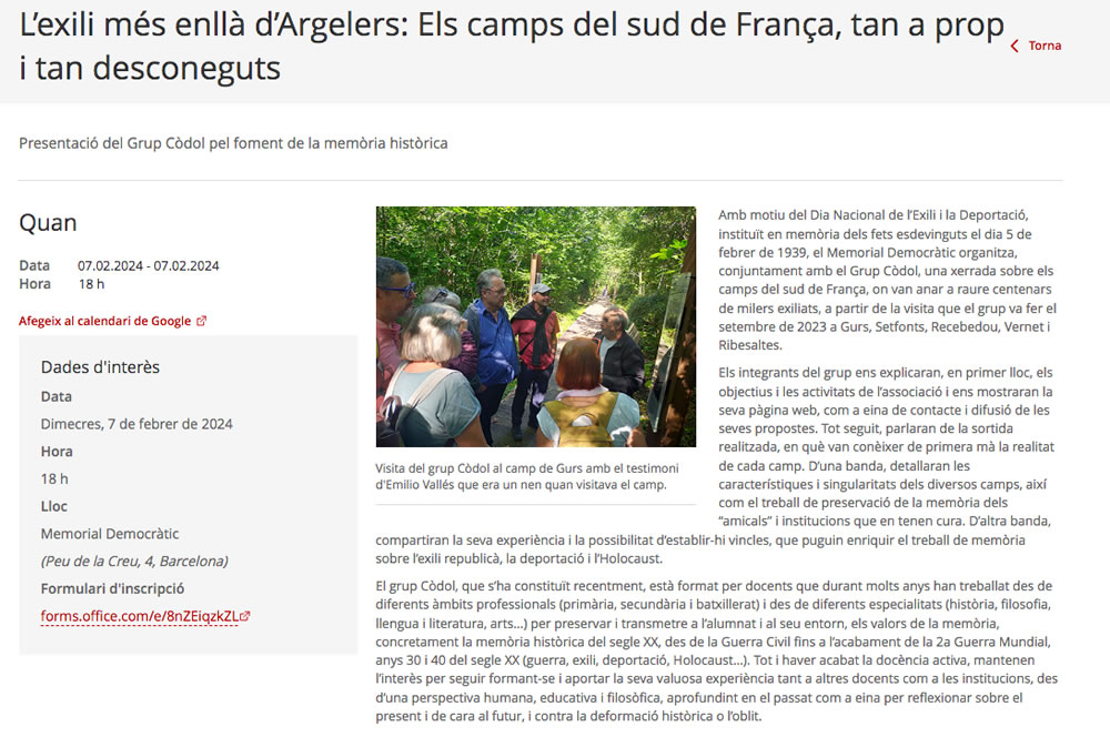 L’exili més enllà d’Argelers: Els camps del sud de França, tan a prop i tan desconeguts. 7 de febrer admin01/02/24