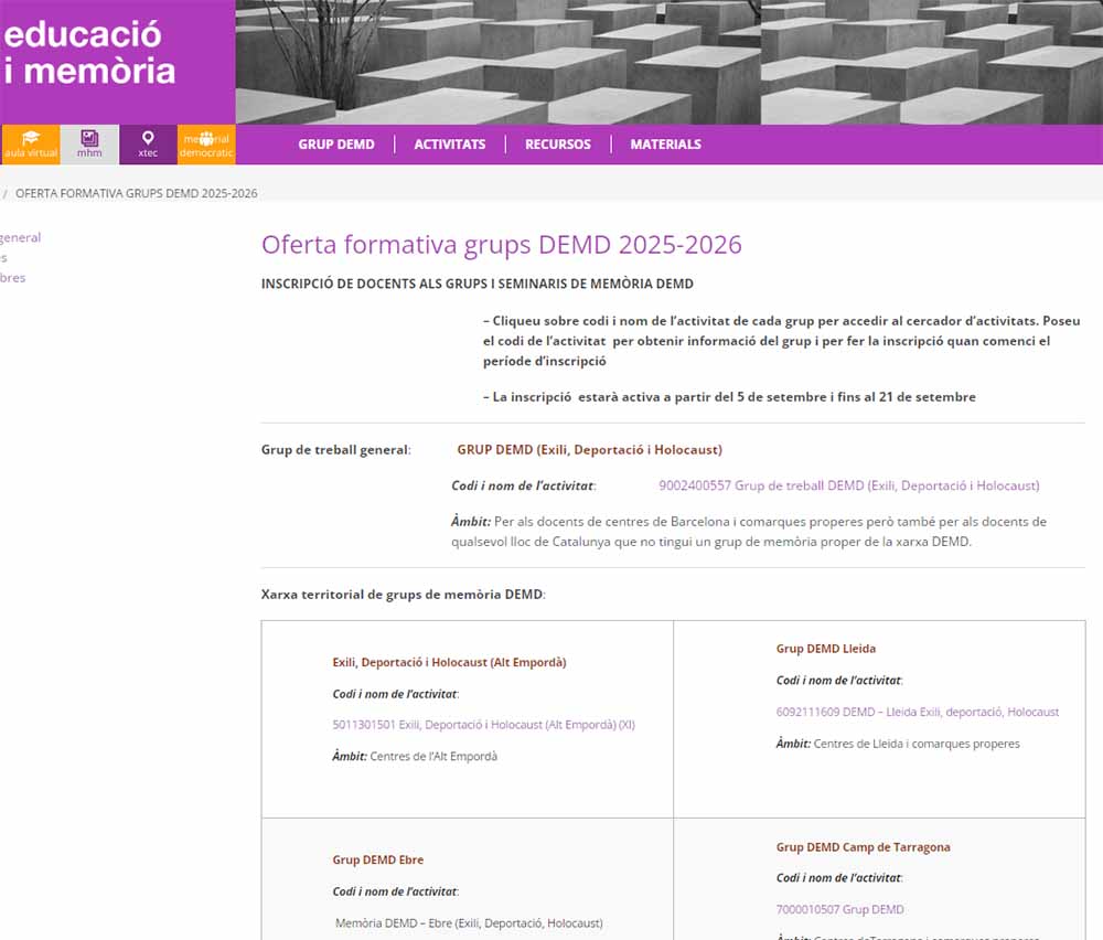 Educació i Memòria. Grup DEMD (Exili, Deportació i Holocaust) | https://projectes.xtec.cat/memoriaieducacio