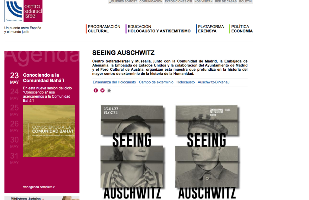 Seeing Auschwitz. Centro Sefarad Israel. Madrid fins al 15 de juliol admin20/05/22 Exposició fins el 17 de juliol de 2022 al Centre Sefarad Israel de Madrid