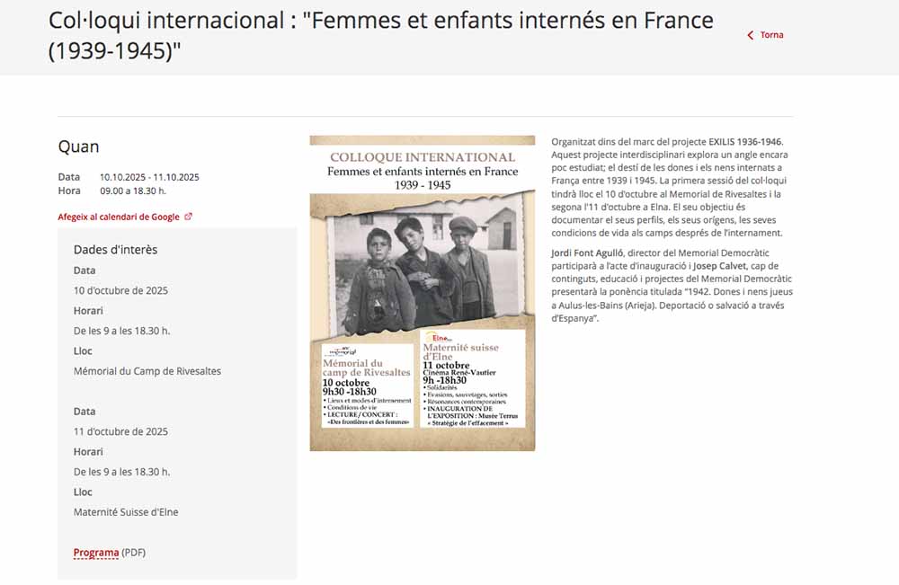 Col·loqui internacional : “Femmes et enfants internés en France (1939-1945)”. 10 i 11 d’octubre admin29/09/25
