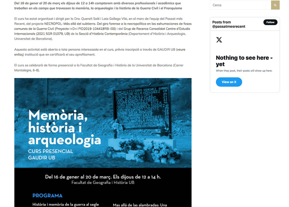 • Curs “Memòria, història i arqueologia”. Del 16 de gener al 20 de març
