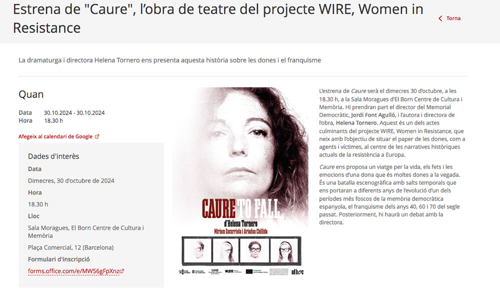 Estrena de “Caure”, l’obra de teatre del projecte WIRE. 30 d’octubre