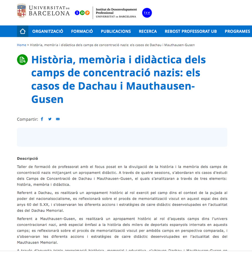 • “Història, memòria i didàctica dels camps de concentració nazis: els casos de Dachau i Mauthausen-Gusen”. Inscripció fins el 10 d’octubre