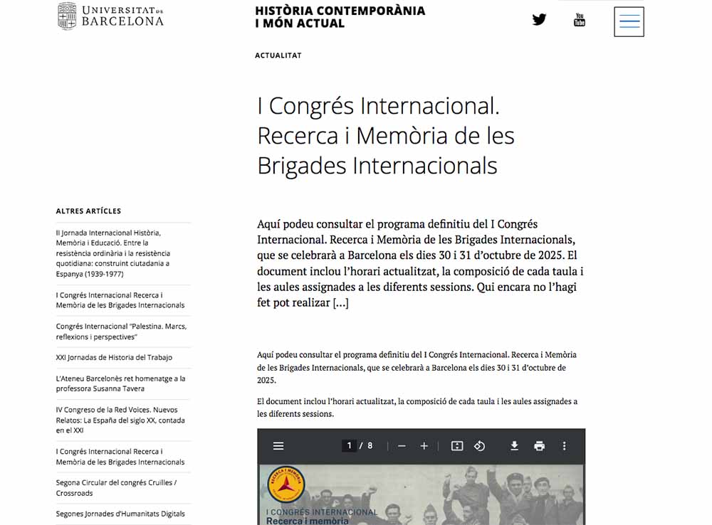 I Congrés Internacional Recerca i Memòria de les Brigades Internacionals. 30 i 31 d’octubre admin14/10/25