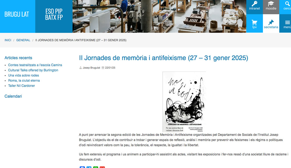 II Jornades de memòria i antifeixisme. Institut Josep Brugulat. Del 27 al 31 de gener