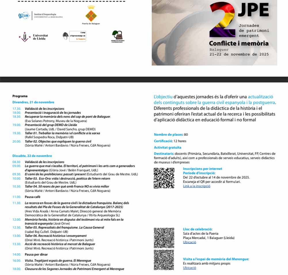 II Jornades de patrimoni emergent: “Conflicte i memòria”. 21 i 22 de novembre