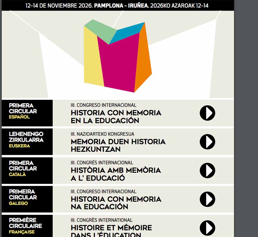 III Congreso Internacional Historia con Memoria en la Educación / III Nazioarteko Kongresua Memoria Duen Historia Hezkuntzan. Presentació de comunicacions fins al 28 de febrer de 2026