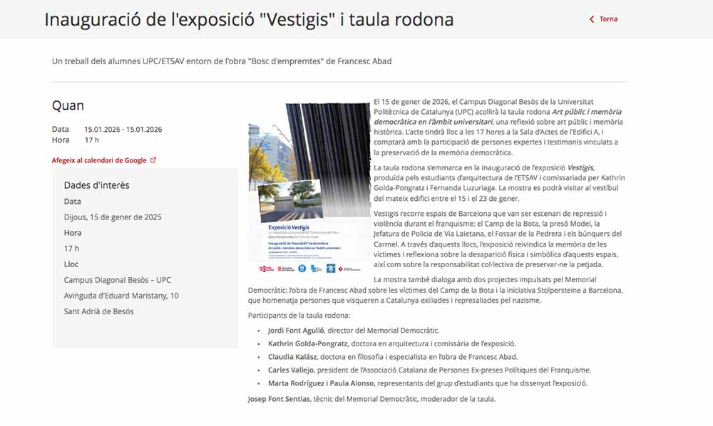 Inauguració de l’exposició “Vestigis” i taula rodona. 15 de gener