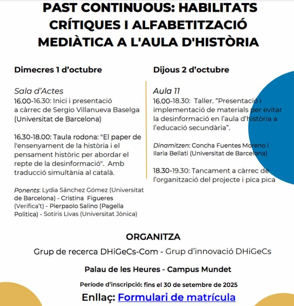 Jornades “Past Continuous: Habilitats crítiques i alfabetització mediàtica a l’aula d’Història”. 1 i 2 d’octubre admin26/09/25