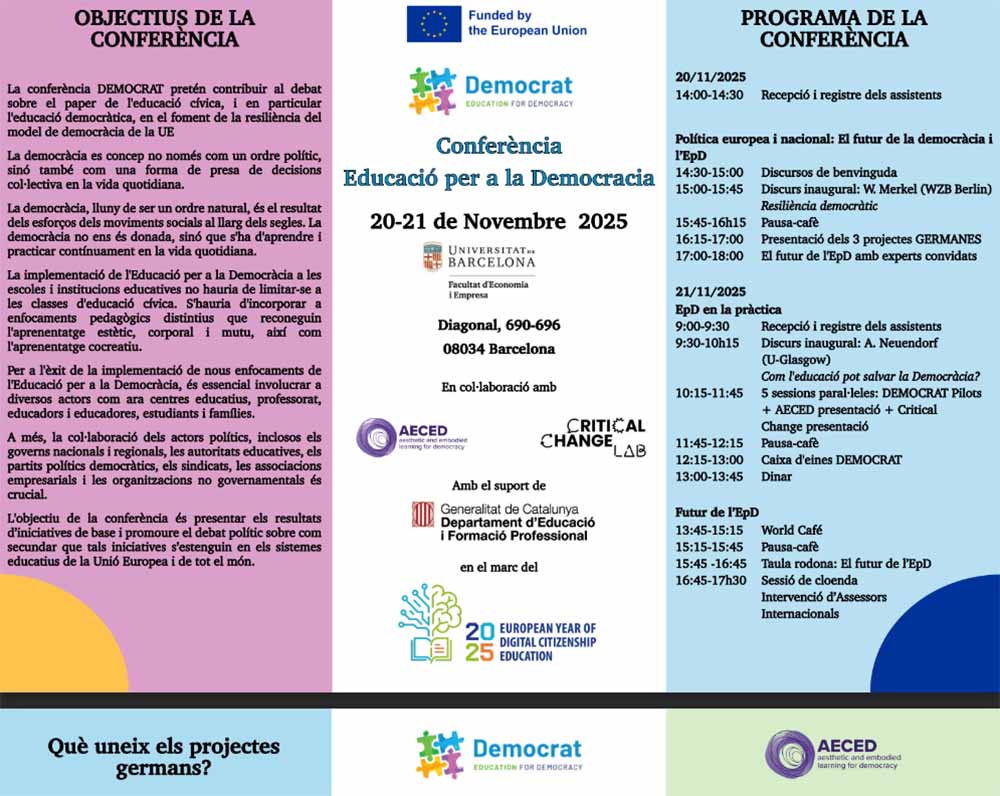 Projecte Democrat. Conferència Educació per a la Democràcia. 20 i 21 de novembre