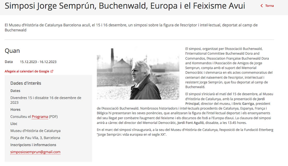 Simposi Jorge Semprún, Buchenwald, Europa i el Feixisme Avui. 15 i 16 de desembre