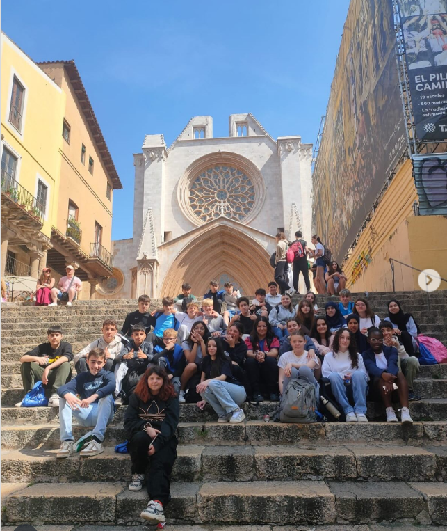 Us  agradaria estar com aquests alumnes? Sabeu per què hi eren a les escales? l’alumnat de 2n de l’ ESO ha participat en el projecte MeduTarraco Medieval, un joc de preguntes a través d’una aplicació per descobrir el patrimoni medieval de la ciutat. A més, han visitat la catedral i han fet l’activitat del Mapping Tarraco, una experiència immersiva amb l’ajuda de la jove esclava romana Melpomene. Una bona manera d’aprendre sobre el nostre passat!
