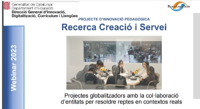 El Programa Recerca, Creació i Servei fomenta els aprenentatges competencials a partir de reptes derivats de necessitats que plantegen entitats de l’entorn i que es concreten en l’elaboració de productes i serveis culturals. Aplica a tot l’alumnat de 3r o de 4t d’ESO en les hores de gestió autònoma del currículum.
