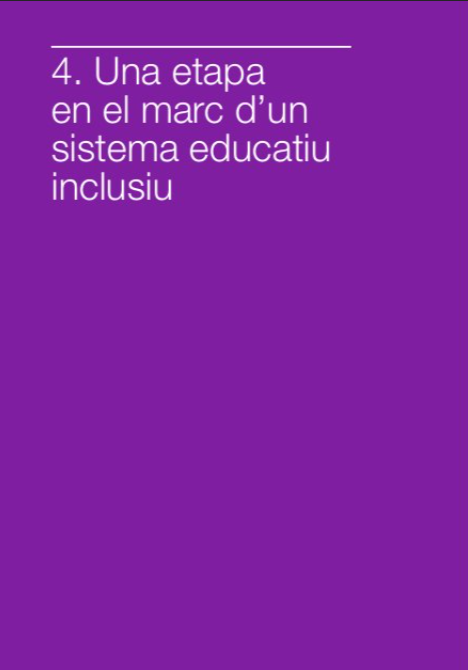 • El quart apartat, posa el focus en la inclusió i ajuda a entendre com es concreta un sistema educatiu veritablement inclusiu en el primer i segon cicle d’educació infantil.
