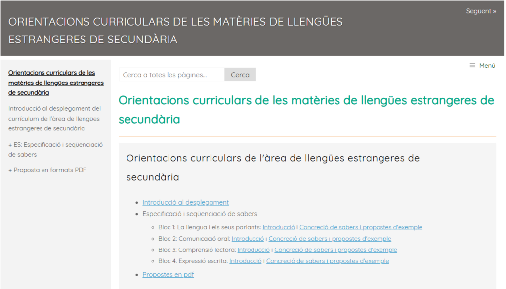 Accés a les orientacions completes de les matèries de llengües estrangeres de secundària