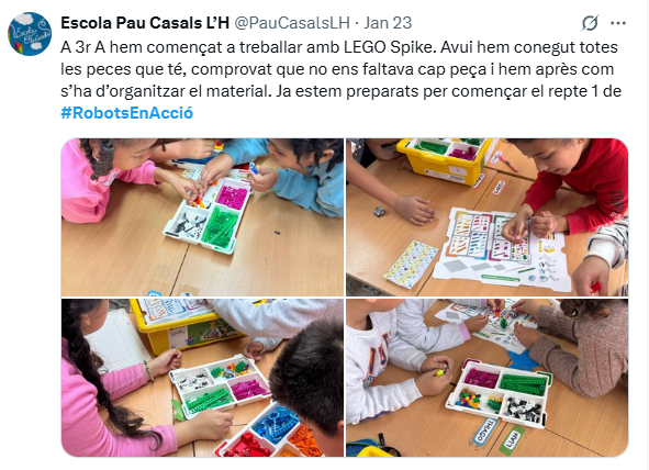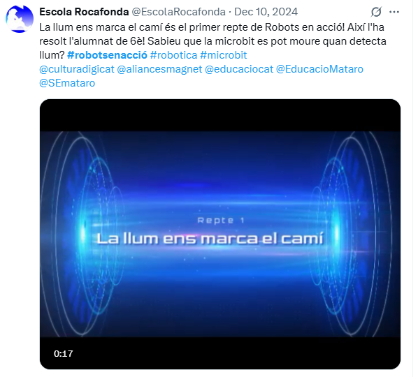 Robots en acció! és un projecte que té com a objectiu contribuir al desenvolupament de la competència digital de l’alumnat i, en especial, del pensament computacional, mitjançant l’ús dels equipaments de robòtica disponibles als centres educatius.