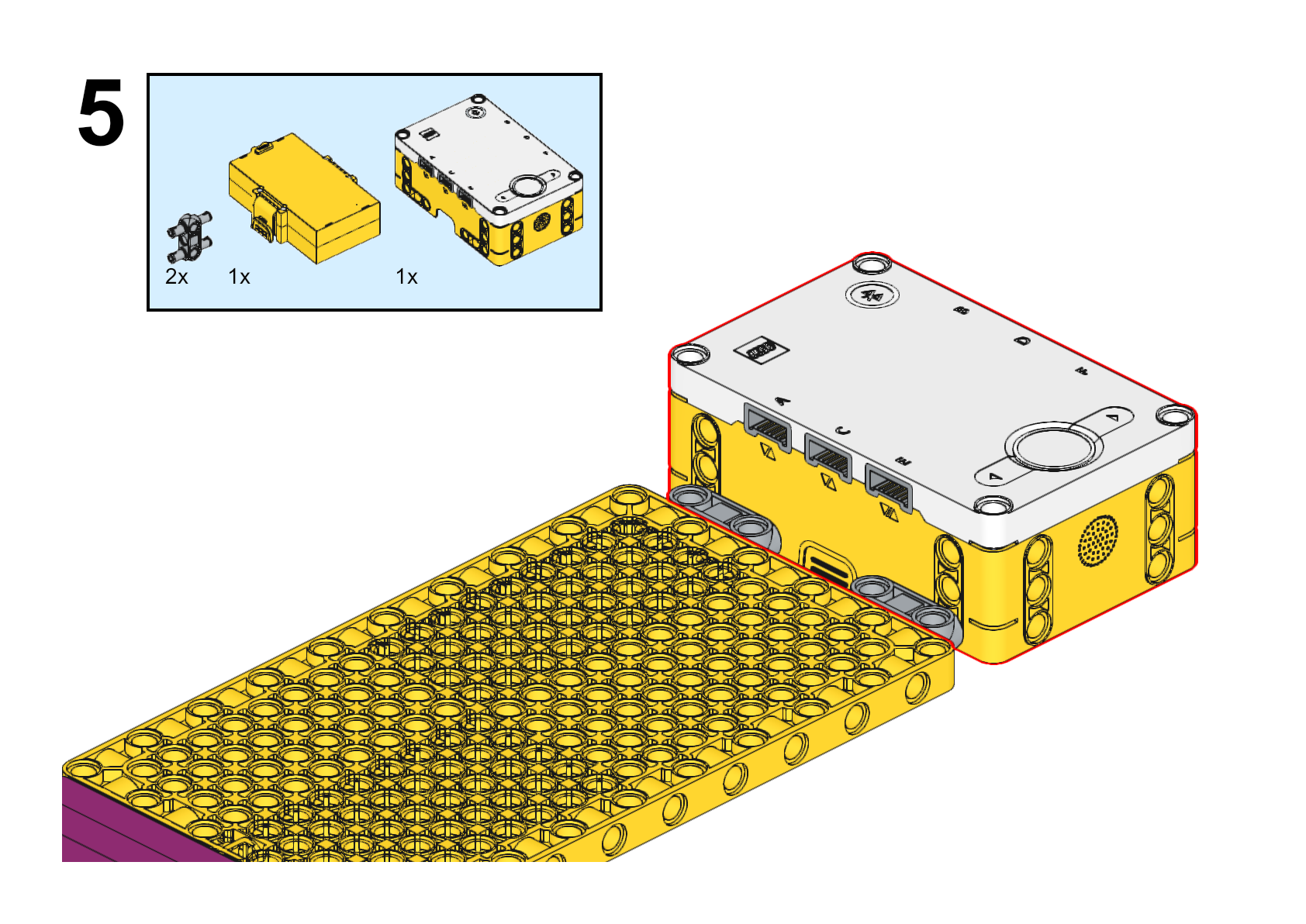 - Amb peces tipus Lego o altres materials construÏu una mena de pont suportat en les peces d’acoblament, que passi damunt del cap del robot.