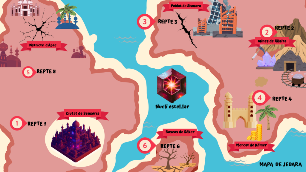 Esteu preparats? En aquesta nova aventura, viatjareu a aquests sis indrets de Jedara i haureu de superar tots els reptes per salvar el planeta d’una crisi global.