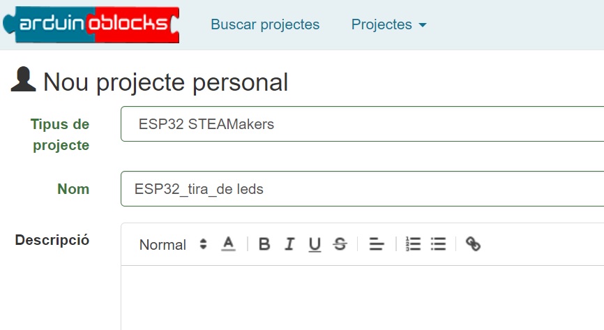 2. Aneu a ArduinoBlocks, inicieu sessió i comenceu un nou projecte del tipus “UNO”
