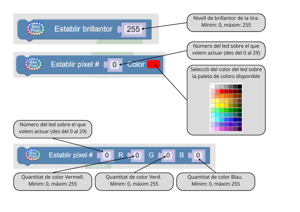 5. En aquesta mateixa categoria veureu que hi ha diverses opcions per treballar amb els leds de manera individual. Podeu establir el color, la brillantor, etc. Tingueu en compte que la numeració comença al “0”, de manera que els leds van des del 0 fins al 29.