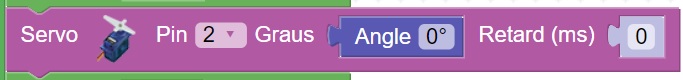 4. A continuació, de la categoria “Motors / Servo” seleccioneu el bloc “Servo” i poseu-lo al bloc “Bucle”. Seleccioneu el pin on teniu connectat el servomotor i indiqueu l’angle de gir i si voleu que tingui algun retard abans de fer-lo.