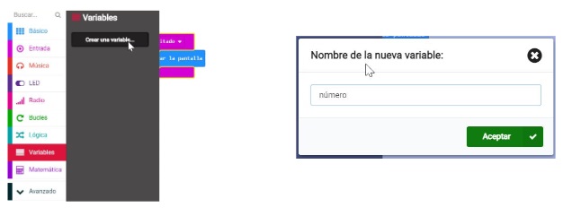 2. A continuació treballareu sobre el dau gràfic. Creeu la variable “número”.